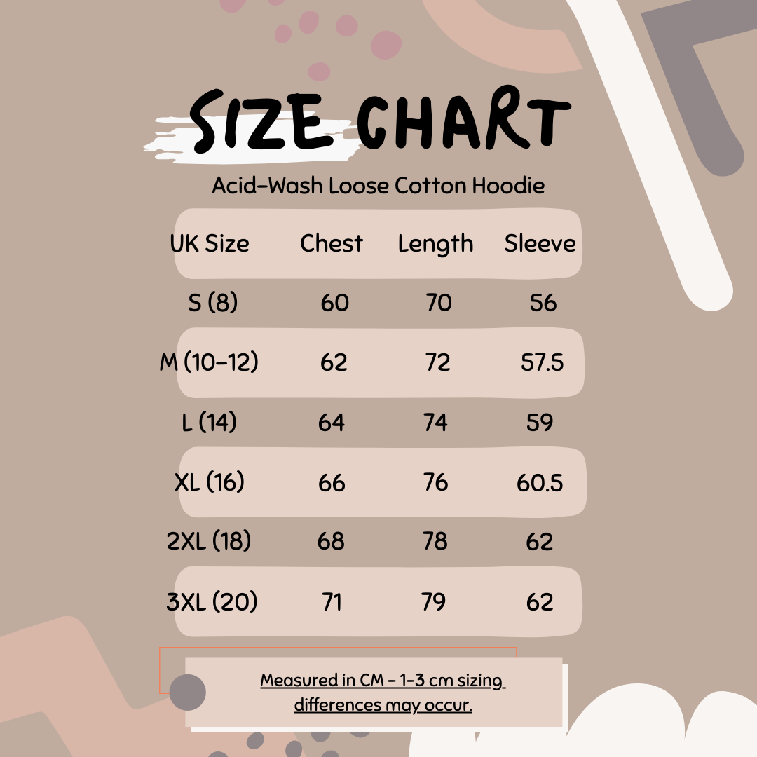 - Unisex Acid-Wash Loose Cotton Hoodie (420 GSM heavyweight) with optional customisation